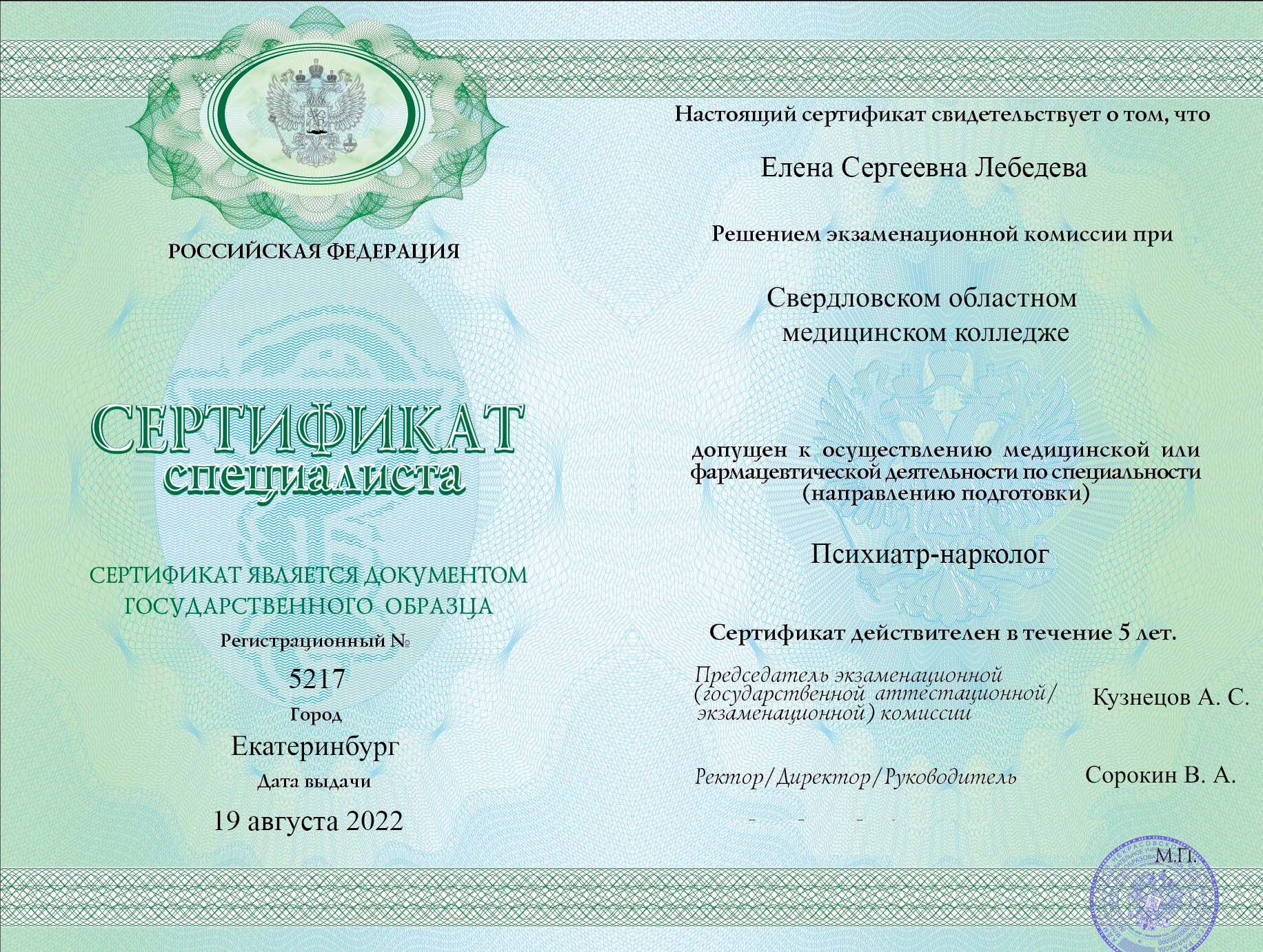 Елена Сергеевна Лебедева врач нарколог клиники доктора Стукаловой в Лебедяни